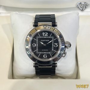 CARTIER PASHA SEATIMER 2790 40MM STEEL BLACK DIAL RUBBER BAND AUTOMATIC WATCH